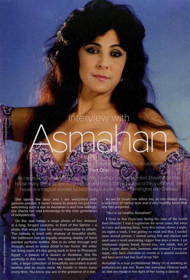 Dance Express, Issue No 17, November 1997 A career profile of Asmahan as a fashion designer in California and her evolution to a professional dancer. From designing and making clothes for rock stars to studying Egyptian Dance and the experiences of the Middle Eastern entertainment scene.