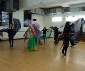 She teaches drop-in classes that feature a dynamic technique of basic steps that presents belly dance as a high energy but elegant dance routine.